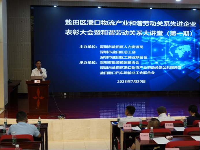 图:盐田区人力资源局联合区总工会、区工商联开展港口物流产业和谐劳动关系先进企业表彰大会暨和谐劳动关系大讲堂活动