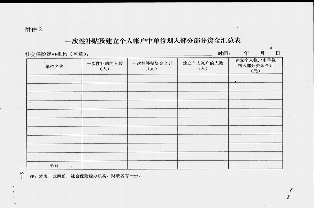 2 一次性补贴及建立个人帐户中单位划入部分资金汇总表